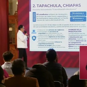 La titular de Seguridad Publica refirió que la intoxicación de estudiantes en Tapachula se habría dado tras consumir dulces que se venden afuera del plantel.
