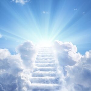 Aparecen escaleras con puertas al cielo, las cuales representan el momento en que una persona trasciende del plano terrenal para buscar la luz; asimismo muestra portales entre las nubes y un infinito camino de agua que conduce a la luminosidad.