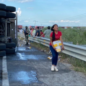 Un tráiler cargado con cerveza volcó en la carretera federal que conduce a Tampico, Tamaulipas, y habitantes de ejidos cercanos al municipio…